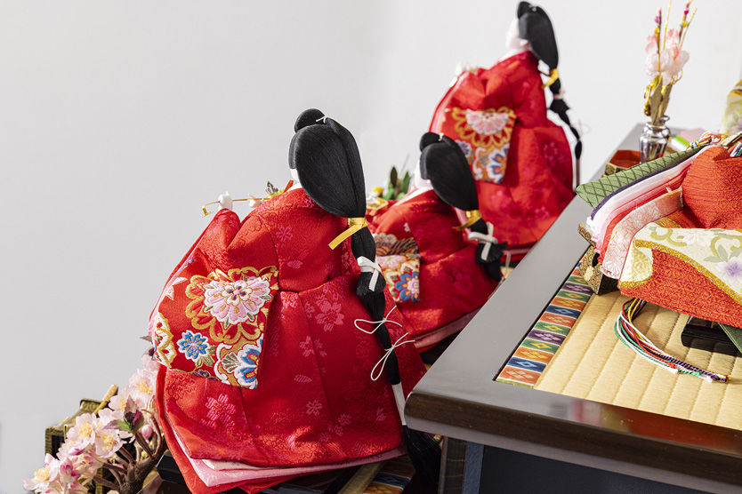 キッチンカウンターの上にも飾れる、コンパクトサイズのひな人形。