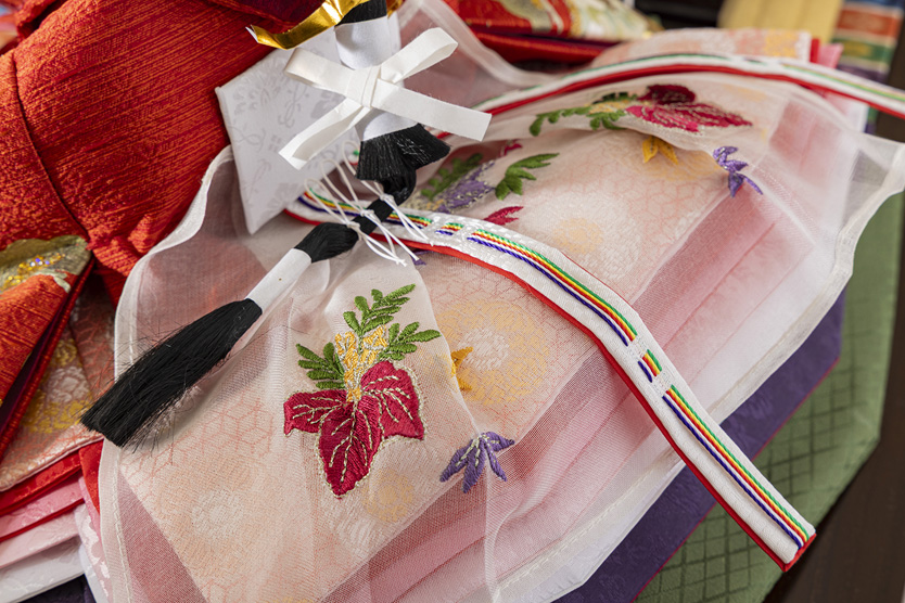 松菊桜柄を用い、縁起の良さを表現しました。