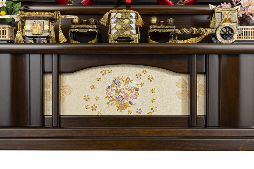 金彩衣装を纏った伝統的な三段飾りです。絢爛豪華な雰囲気を演出します。(本店店長)