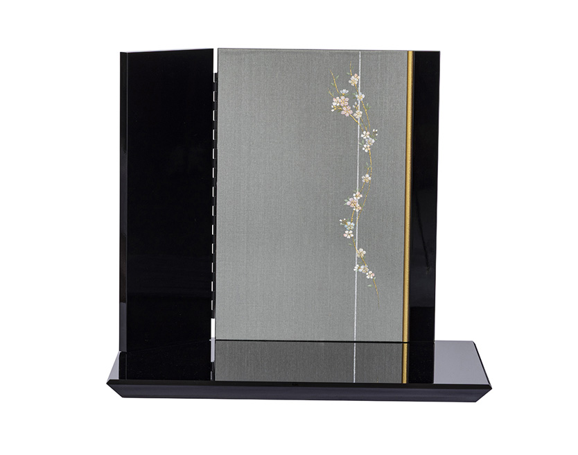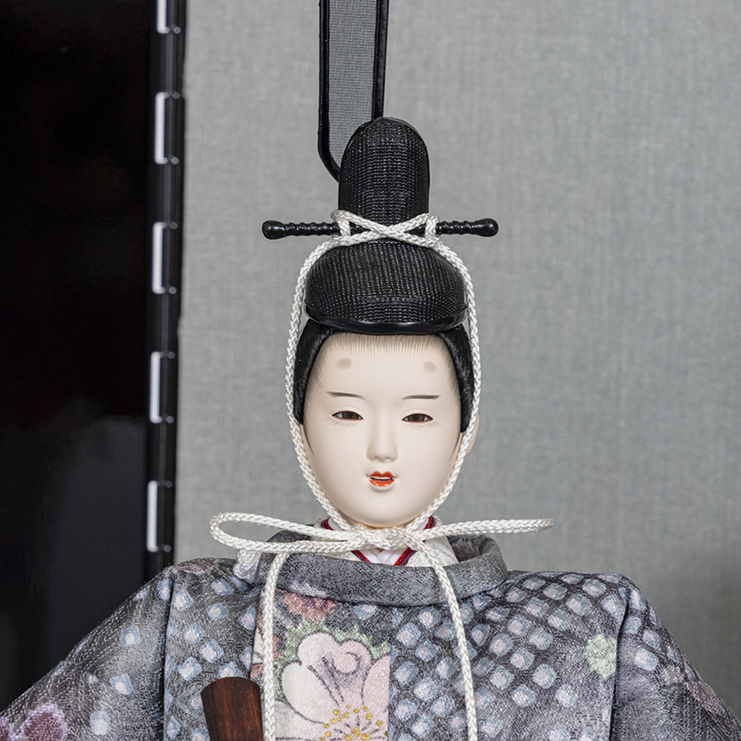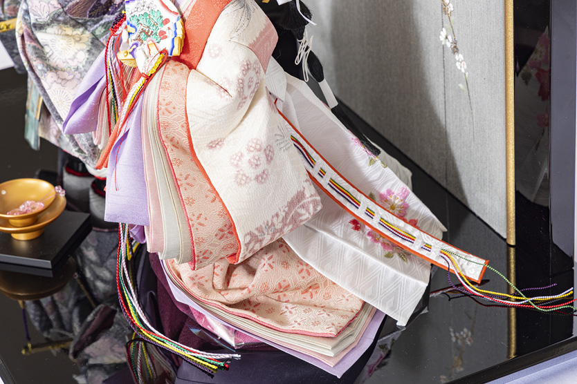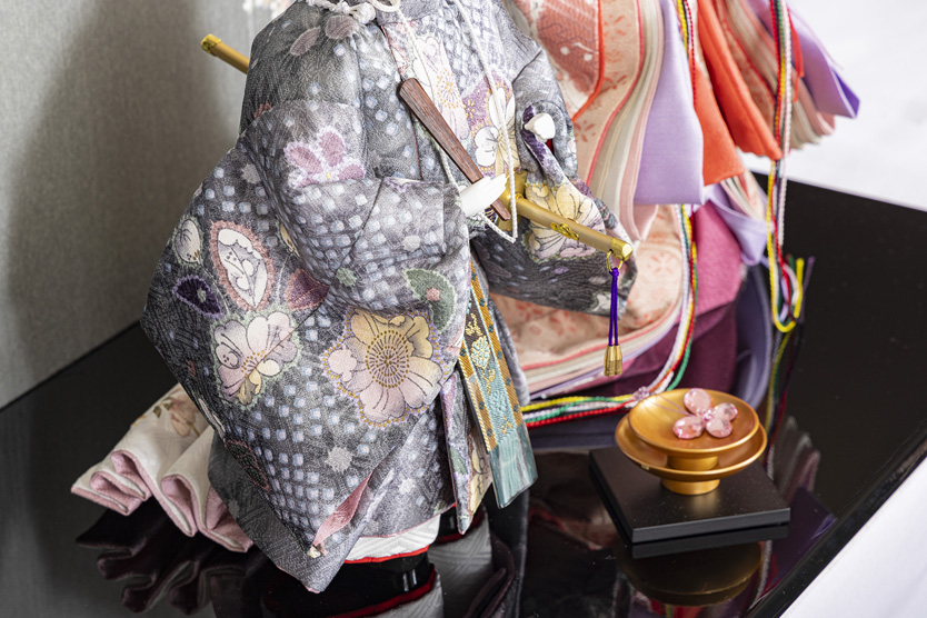 光沢のある辻が花の着物と塗物を組み合わせ、洗練された美しさを表現しました。(節句アドバイザー:市川)