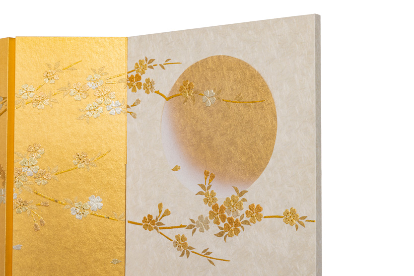 京雛と西陣織を組み合わせたセットです。トレンド屏風とともに、シンプルで素敵に仕上がっています。(節句アドバイザー:神谷)