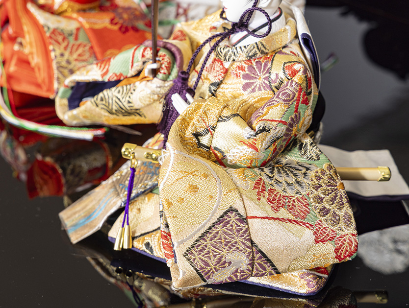 西陣織本金のお着物と会津塗収納箱をセットにしました。コンパクトながらも輝きは永遠です。(節句アドバイザー:川瀬)
