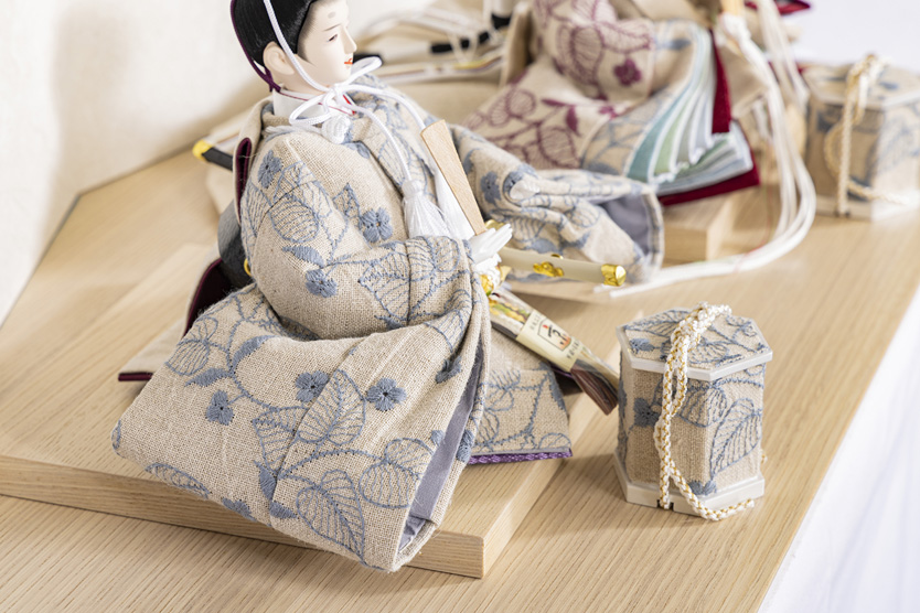 ファッション業界でも注目のエンブロイダリー(刺繍)をお着物に取り入れました。華やかさと温もりを感じさせます。(節句アドバイザー:金森)