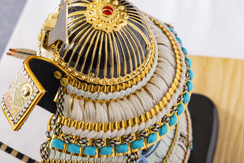 中国三大刺繍の一つ、汕頭(すわとう)刺繍をあしらった子供大将です。毎年人気の五月人形として親しまれています。(節句アドバイザー:川瀬)